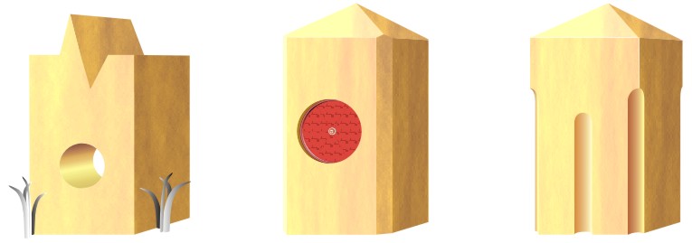 Impact protection holes are widely used in bollards along road sides parks and reserves to lessen the impact of a vehicle collision. They are usually accompanied by delineators recessed 10mm into the bollards to prevent vandalism. Red delineators on the approach side and white the opposite side.