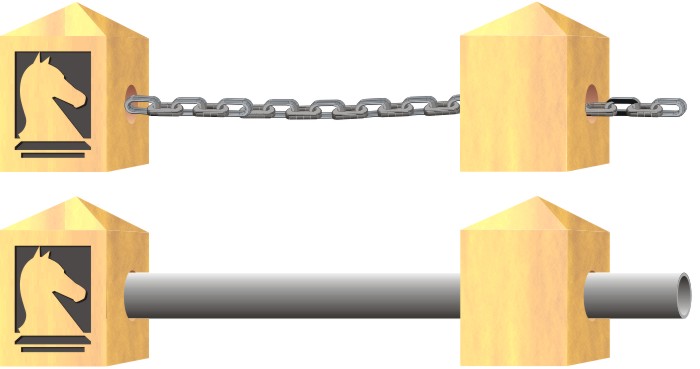 We can drill your Chain, pipe or cable holes up to 85mm. Through bollards up to 300mm square or round. We recommend the hole size for pipe, be 5mm bigger than the outside diameter of the pipe required and 4mm bigger for chain and cable.